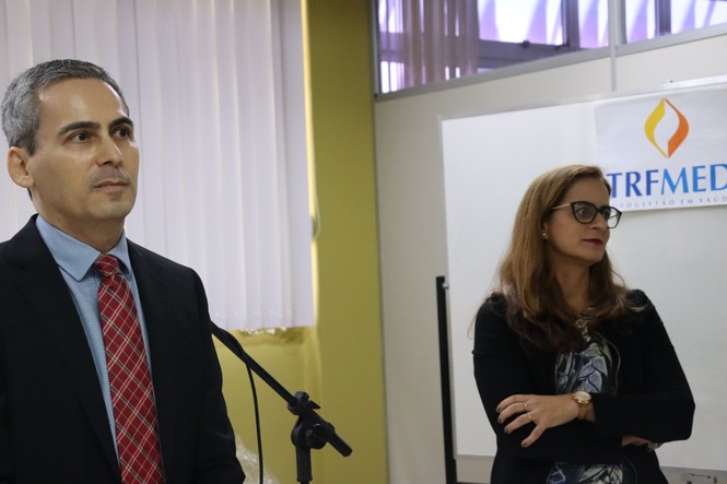 Juiz federal Frederico Azevedo e diretora Juliene Tenório fazem explanação sobre o TRFMED