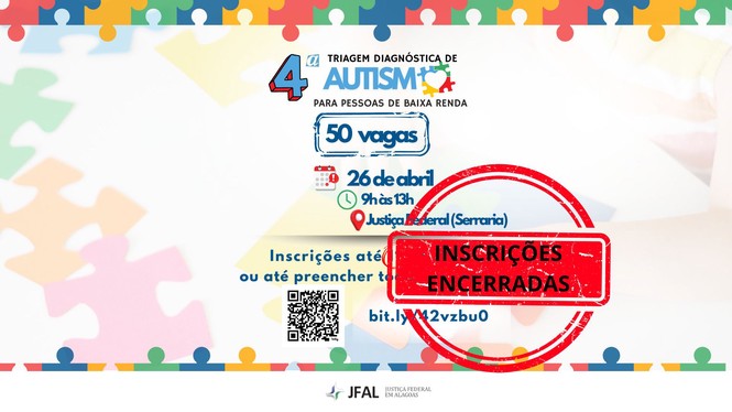 As vagas para a 4ª Triagem Diagnóstica de Autismo foram preenchidas, inclusive, superando em muito o número disponibilizado. Por esse motivo, as inscrições estão encerradas. Em pouco mais de 24 horas de inscrições, foram registradas quase 300 procuras pelo serviço.