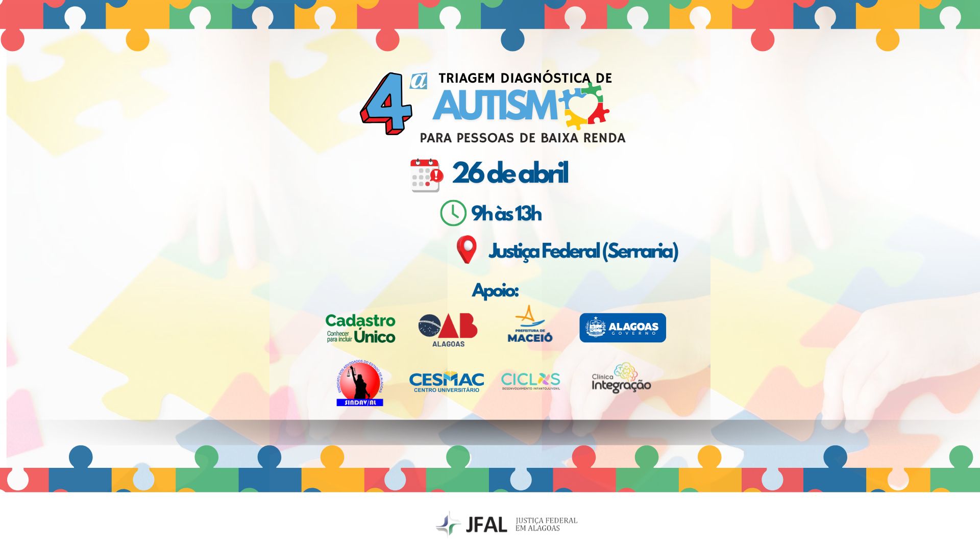 O Judiciário Federal desempenha um papel essencial na efetivação desses direitos, sendo frequentemente acionado para garantir acesso a tratamentos, medicamentos e benefícios sociais. A JFAL realiza anualmente a Triagem Diagnóstica de Autismo, desde 2022.