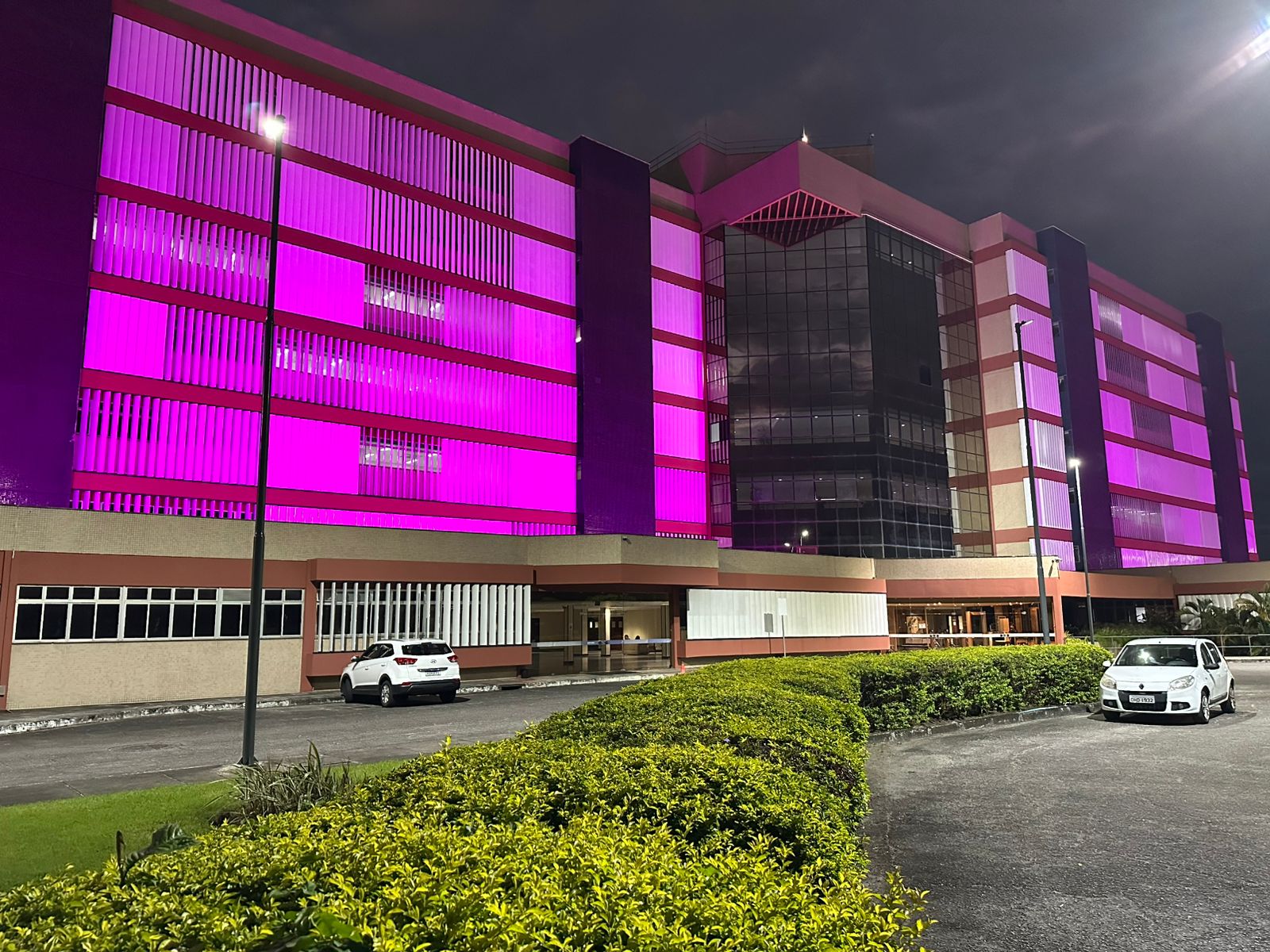 Até o final de outubro, a fachada do prédio principal da JFAL estará iluminada com a cor rosa