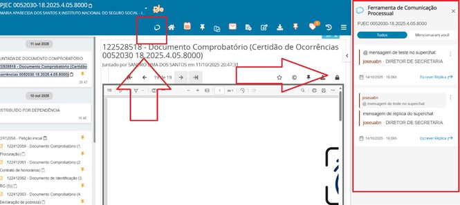 Desenvolvida como uma extensão de navegador, o SuperChat permite que mensagens sejam trocadas diretamente dentro dos processos judiciais, com registro automático na própria ferramenta para visualização exclusiva dos usuários internos da Vara. Entre os recursos disponíveis estão a centralização das mensagens vinculadas a cada processo, o serviço de menções a usuários com notificações automáticas (semelhantes às utilizadas em ferramentas modernas de comunicação) e a atribuição de tarefas com rastreio de realização por meio de sistema de check-in-box.