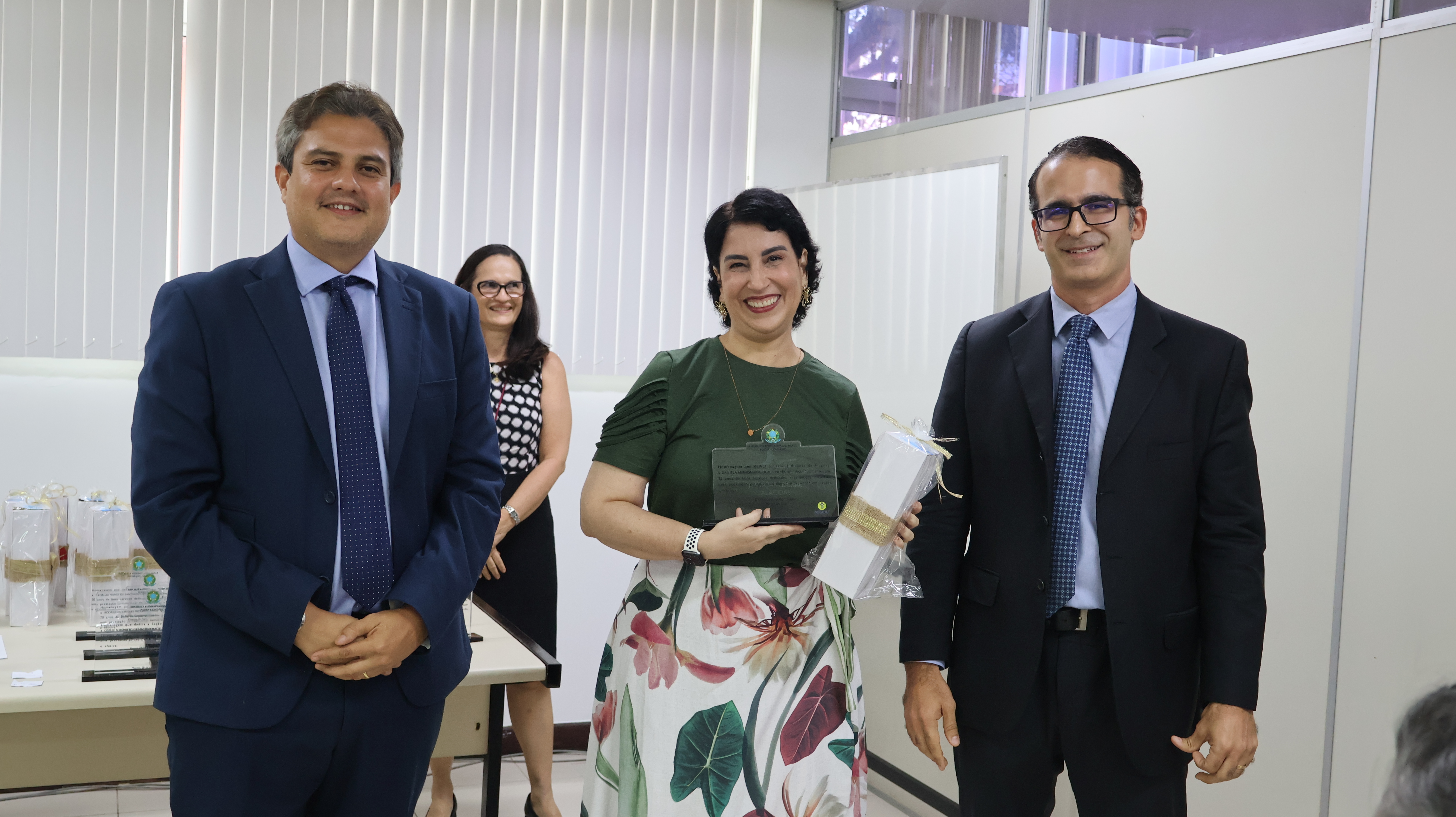 Cada um dos 16 homenageados recebeu uma placa com menção honrosa e uma garrafa térmica, como brinde especial. O diretor e o vice-diretor do Foro, os juízes federais Aloysio Cavalcanti Lima e Antônio José de Carvalho Araújo, respectivamente, conduziram a programação. Na oportunidade, os magistrados lembraram que, por nove anos seguidos, a JFAL alcança 100% no índice de eficiência de desempenho entre as Seções Judiciárias. “E isso só é possível, graças ao envolvimento e comprometimento de cada servidor e servidora”, conforme destacou o juiz Aloysio Cavalcanti.