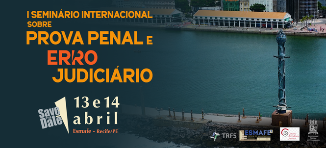 A Escola de Magistratura Federal da 5ª Região (Esmafe) sediará, nos dias 13 e 14 de abril, o I Seminário Internacional sobre Prova Penal e Erro Judiciário. O evento reunirá juristas, pesquisadores e magistrados do Brasil e do exterior, para promover o debate sobre o erro judiciário e suas consequências, bem como possibilitar o intercâmbio de experiências sobre a matéria. A coordenação das atividades é do desembargador federal Fernando Braga, do Tribunal Regional Federal da 5ª Região (TRF5).