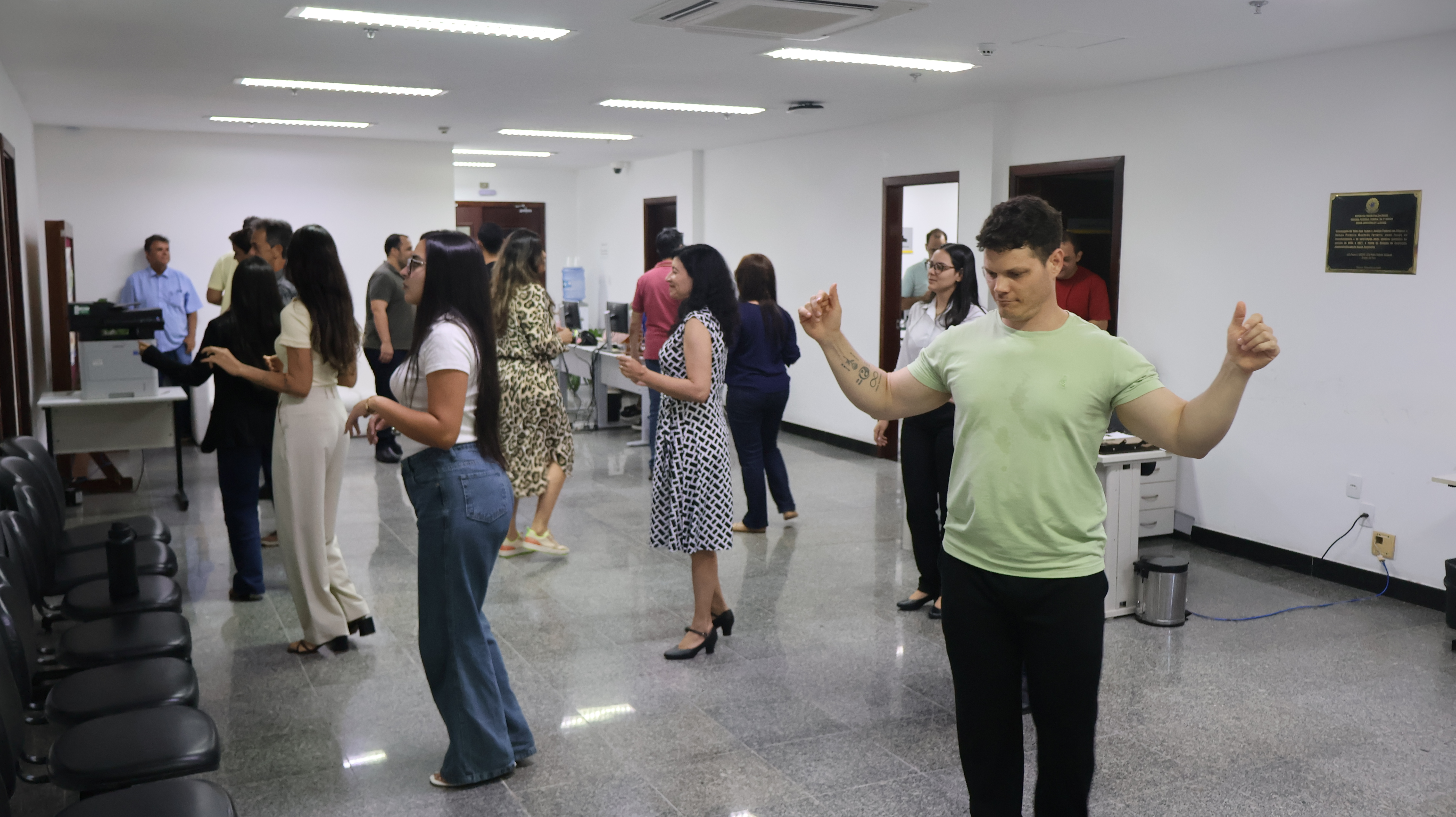 Equilíbrio e movimento foram os fundamentos do bem-estar escolhidos para ditar o ritmo na tarde desta terça-feira, 7, no Espaço Saúde da Justiça Federal em Alagoas (JFAL). Servidores, estagiários, terceirizados e jovens aprendizes tiveram a oportunidade de participar de aula de dança, que compreendeu os gêneros bolero e forró, conduzida pelo professor Walisson Santos. A atividade informal, que contou com 1h de duração, faz parte da programação da II Semana Nacional da Saúde, instituída pelo Conselho Nacional de Justiça (CNJ), com o objetivo de promover ações integradas entre os Poderes Judiciário, Executivo e Legislativo na área da saúde.