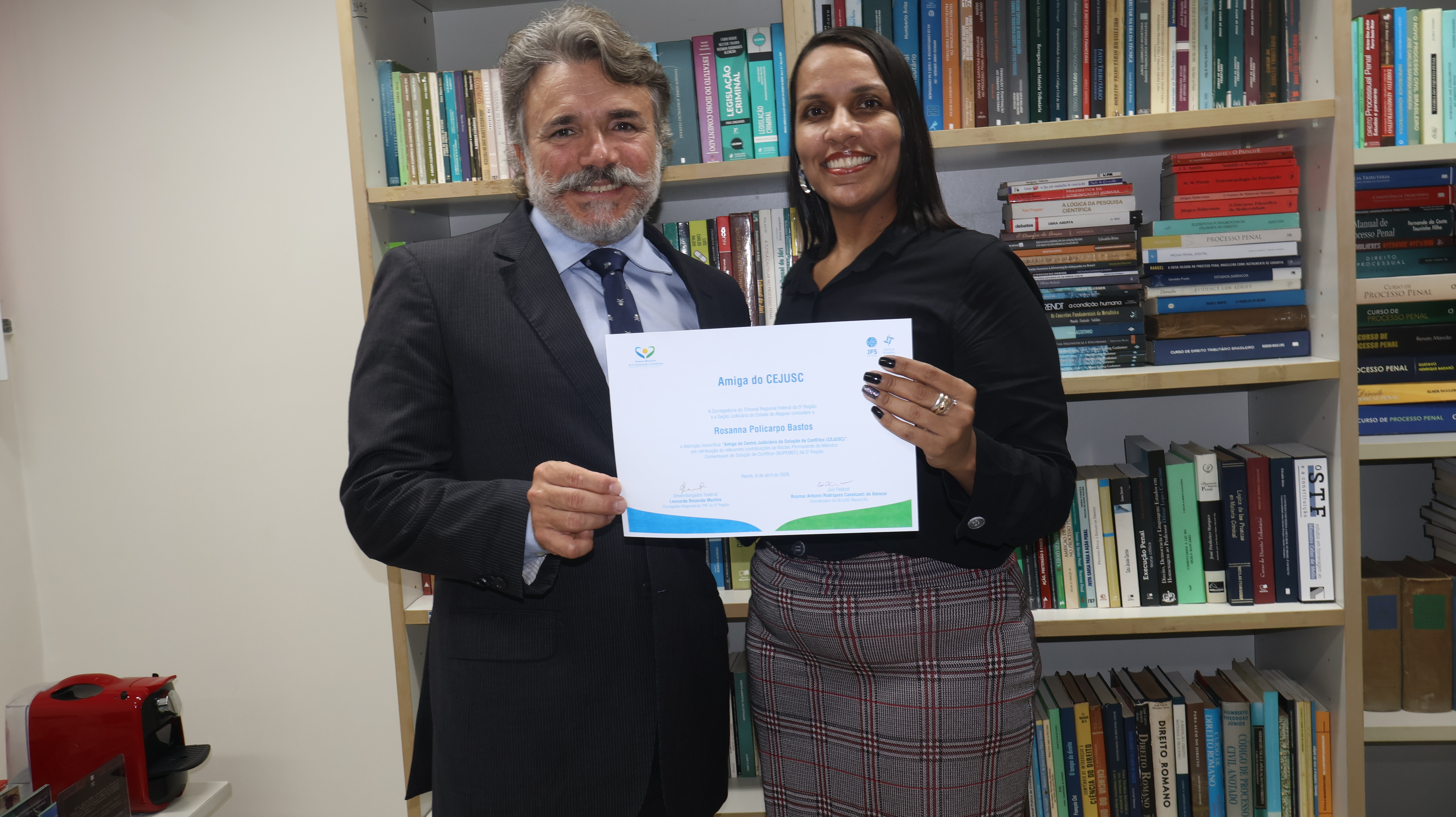 É o que explica o juiz Rosmar Alencar. “O certificado é uma iniciativa da Corregedoria Regional e reconhece o valor das pessoas que contribuem de maneira relevante para o Cejusc. Então, realizamos esta entrega como maneira de reconhecer o engrandecimento que estas pessoas trazem, e também como uma forma de fundir a importância do centro e incentivar que outros também se tornem amigos do Cejusc”, resume. O supervisor do Cejusc, Inaldo Aguiar, também prestigiou a homenagem.