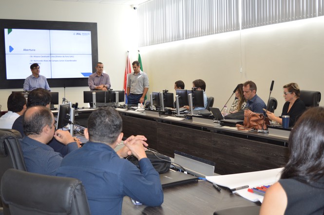 A reunião teve como fio condutor o lançamento da ferramenta Cassandra, desenvolvido no âmbito da Residência em Tecnologia da Informação, que possui a finalidade de automatizar atividades de expedição de Requisitórios. O diretor do Foro da JFAL e o coordenador do Laboratório de Inovação (iLab), juízes federais Aloysio Cavalcanti Lima e Raimundo Campos Júnior, respectivamente, participaram da abertura da programação.