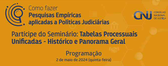 Como fazer pesquisas empíricas aplicadas a políticas judiciárias? É o que se propõe a trabalhar o seminário “Tabelas Processuais Unificadas - Histórico e Panorama Geral”, promovido pelo Departamento de Pesquisas Judiciárias do Conselho Nacional de Justiça (CNJ). O evento acontece nesta quinta-feira, 02, pela plataforma Webex e com transmissão ao vivo pelo Canal do CNJ no YouTube.
