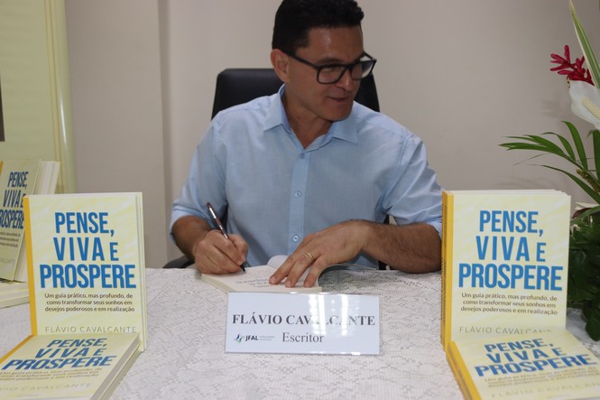 A Semana do Servidor continua na Justiça Federal em Alagoas (JFAL). Na tarde desta quarta-feira, 30, dentro da programação, houve o lançamento do primeiro livro do policial judicial Flávio Cavalcante. A iniciativa, realizada no Salão Nobre da JFAL, reuniu amigos, familiares e colegas de trabalho de Flávio. O livro “Pense, Viva e Prospere” apresenta reflexões sobre autoconhecimento, autocuidado e formas de ir atrás da realização de sonhos e desejos pessoais. A obra foi muito bem recebida e o lançamento na própria JFAL reflete a valorização e o reconhecimento de seus colegas de trabalho e da instituição pela iniciativa cultural.