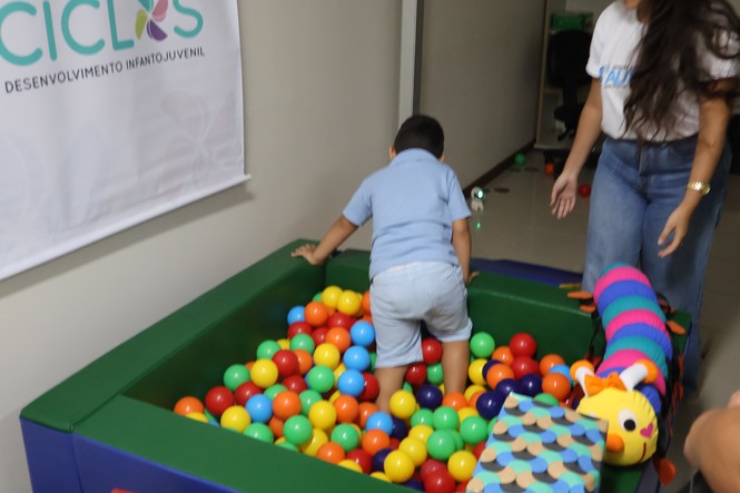 A Clínica Ciclos esteve presente com a montagem de uma sala de acomodação sensorial. “A sala de acomodação sensorial serve como uma forma de acalmar as crianças quando elas estão agitadas. Temos recursos com estímulos que conseguem deixar as crianças mais tranquilas, como almofadões, piscina de bolinhas e luzes mais baixas. A exposição a este tipo de ambiente é muito importante. São menos informações sensoriais para que o cérebro da criança consiga se organizar e processar as situações com mais calma”, explica a terapeuta Carla Araújo, coordenadora da clínica.