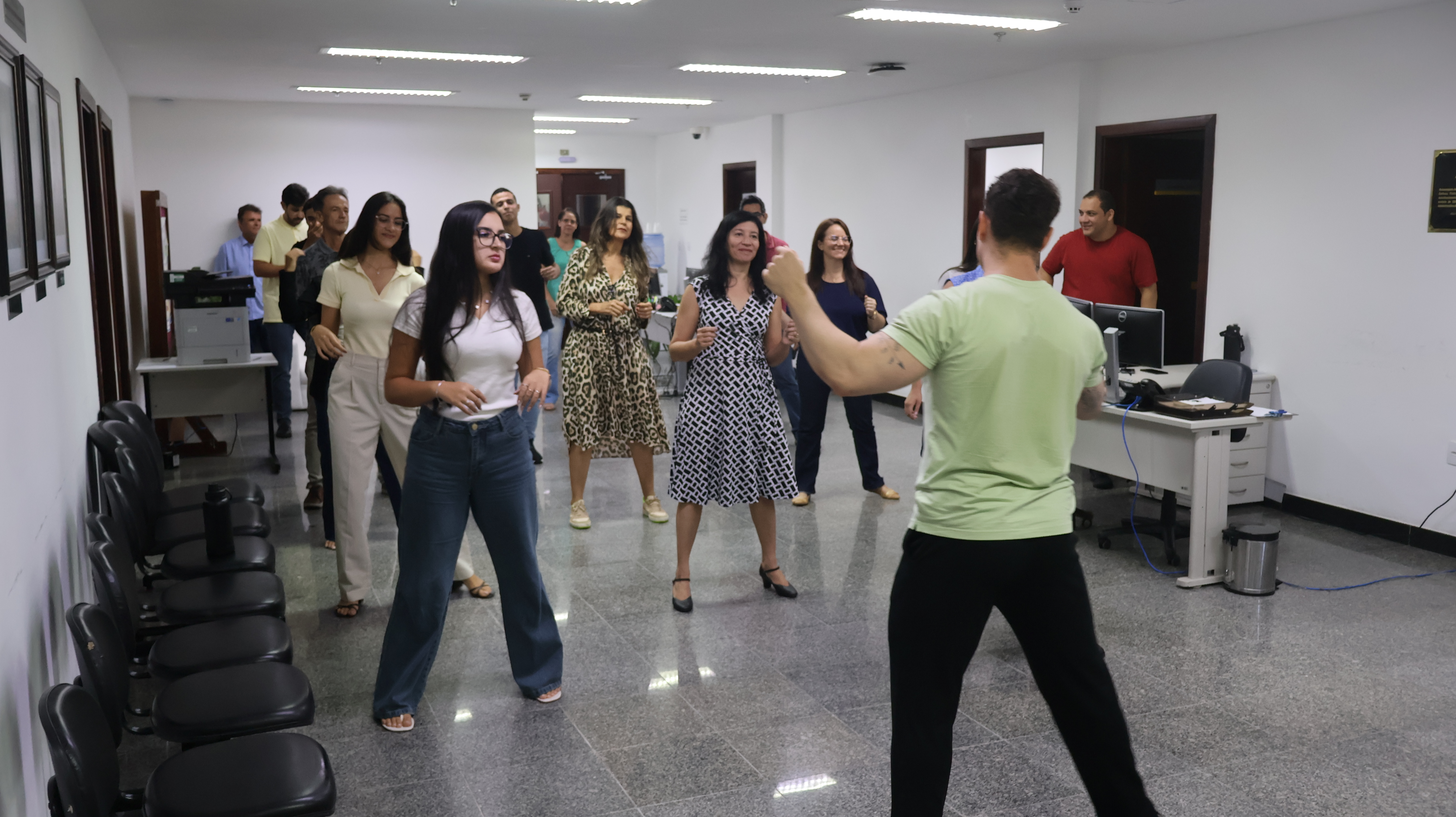 Equilíbrio e movimento foram os fundamentos do bem-estar escolhidos para ditar o ritmo na tarde desta terça-feira, 7, no Espaço Saúde da Justiça Federal em Alagoas (JFAL). Servidores, estagiários, terceirizados e jovens aprendizes tiveram a oportunidade de participar de aula de dança, que compreendeu os gêneros bolero e forró, conduzida pelo professor Walisson Santos. A atividade informal, que contou com 1h de duração, faz parte da programação da II Semana Nacional da Saúde, instituída pelo Conselho Nacional de Justiça (CNJ), com o objetivo de promover ações integradas entre os Poderes Judiciário, Executivo e Legislativo na área da saúde.